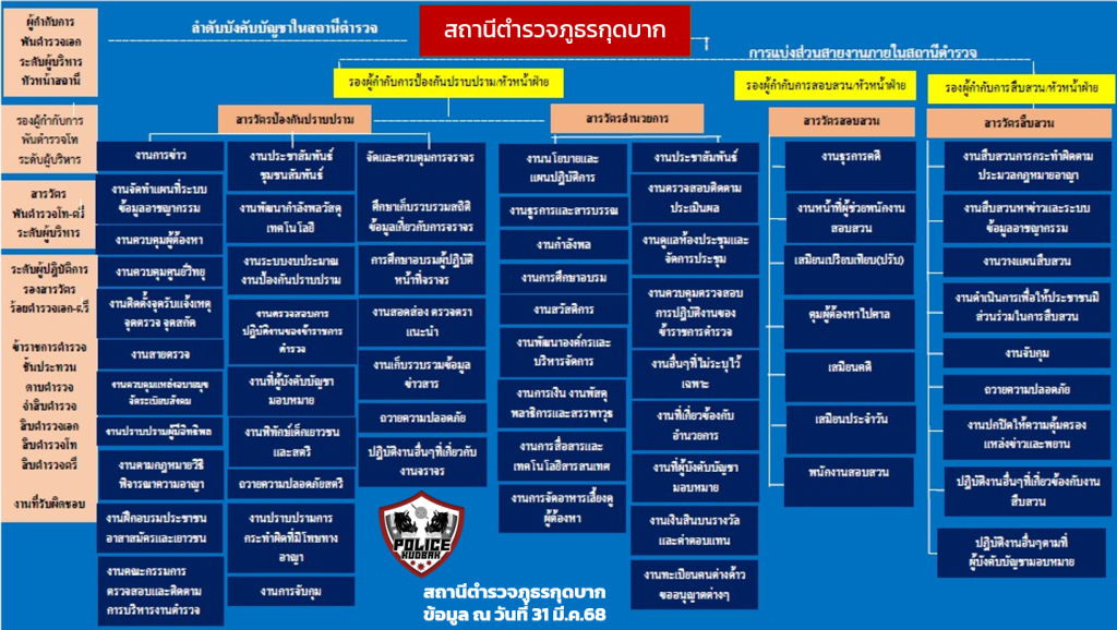 โครงสร้างหน่วยงาน เเบ่งตามหน้าที่ สถานีตำรวจภูธรกุดบาก